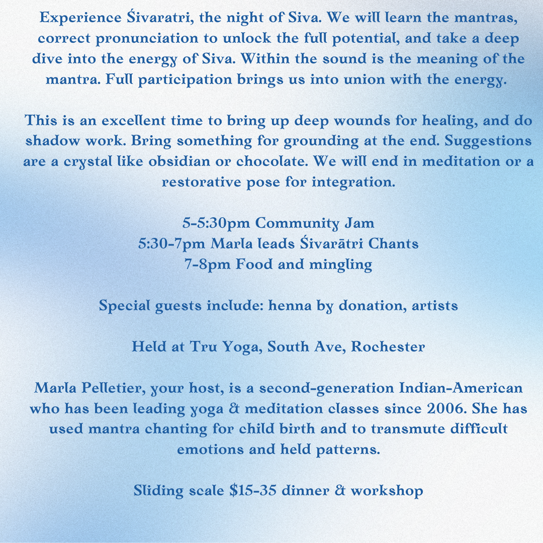 We send emails twice a month with the schedule above and sign up links. Also, if you join Rochester Kirtan on Facebook, stay informed about others’ events in Western NY.